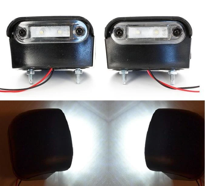 Pair 4 LED Red / White 12V/24V Tail Marker Lights & Number Plate Lamp van bus